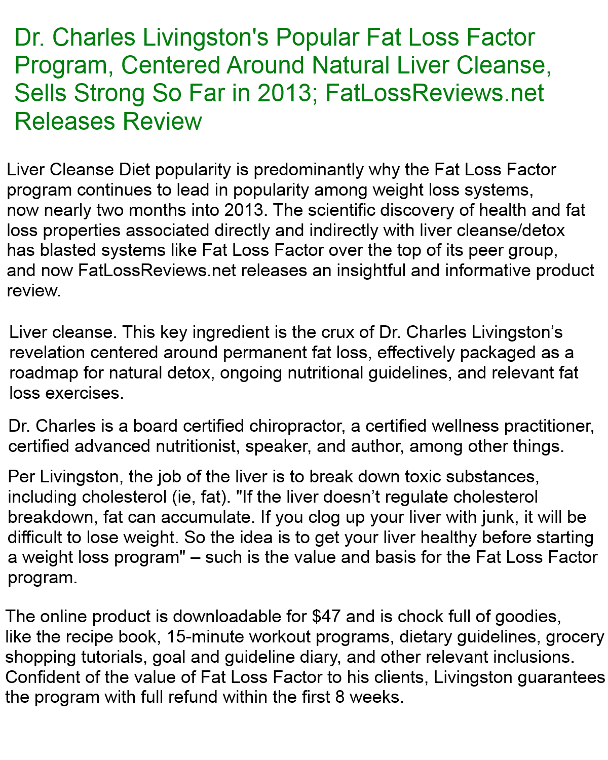 Fat Loss Factor Review By Dr Charles Livingston Fat loss factor pdf is a newly updated product created by dr.