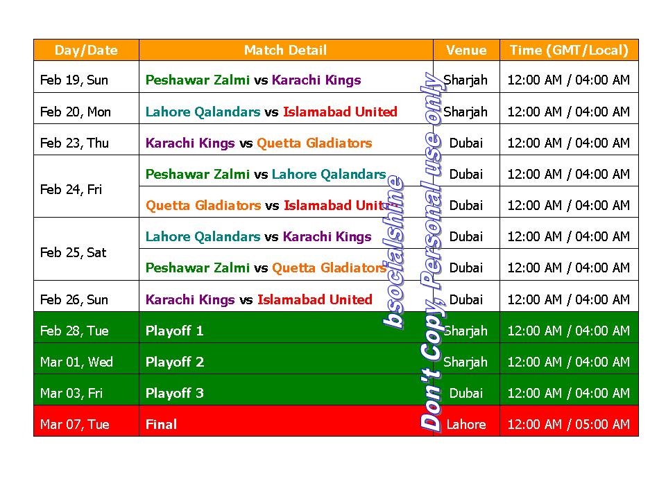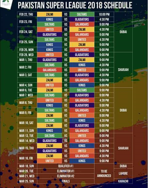 Psl Schedule 2018 Time Table : Pcb announces schedule, time table, fixtures, dates and timings of psl 2019.